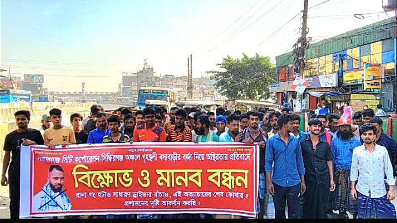 সিদ্ধিরগঞ্জে পরিচ্ছন্নকর্মীদের কাছে চাঁদা দাবির প্রতিবাদে বিক্ষোভ