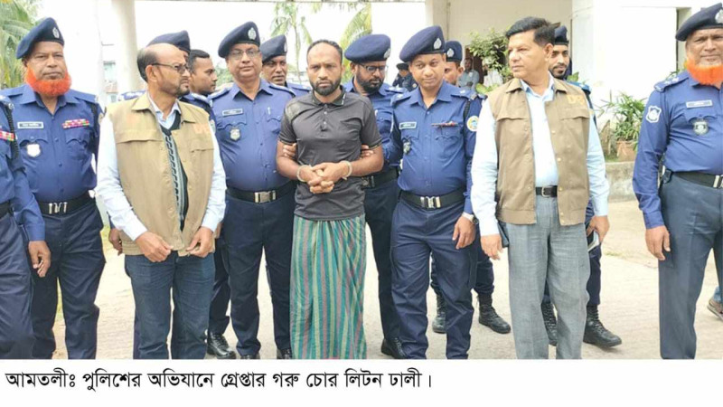 আমতলীতে পুলিশের অভিযানে ১৪ চোরাই গরু উদ্ধার চোর গ্রেপ্তার