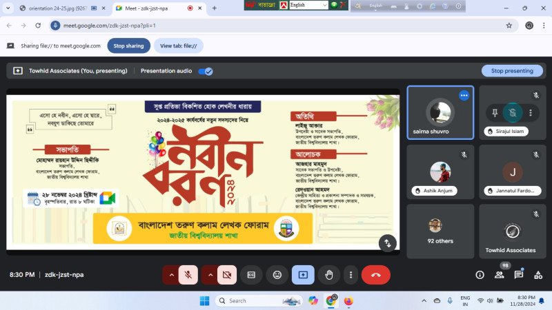 বিটিসিএলএফ জাতীয় বিশ্ববিদ্যালয় শাখার নবীনবরণ অনুষ্ঠিত