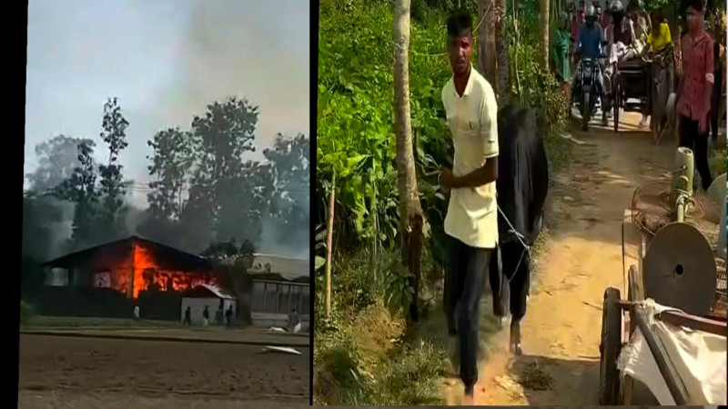 শেরপুরে কথিত ভন্ড পীরের দরবারে হামলা অগ্নিসংযোগ লুটপাট