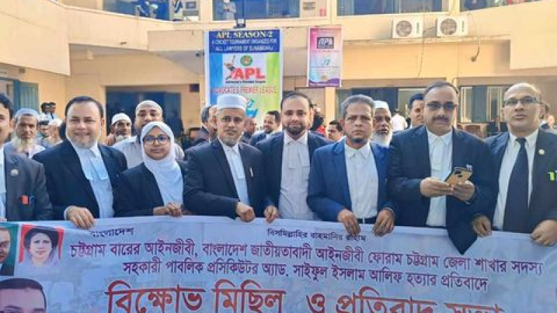 আলিফ হত্যার প্রতিবাদে সুনামগঞ্জে জাতীয়তাবাদী আইনজীবী ফোরামের বিক্ষোভ