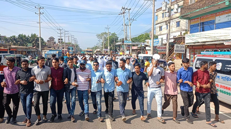 দাগনভূঞা ফ্যাসিবাদ বিরোধী ও ইস্কনের বিরুদ্ধে ছাত্র-জনতার বিক্ষোভ