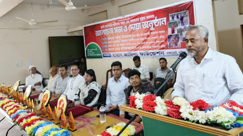 নাঙ্গলকোট হাসান জামিলা ফাউন্ডেশন এর উদ্যোগে জুলাই - আগস্টের শহীদের স্মরনে আলোচনা সভা ও দোয়া মাহফিল