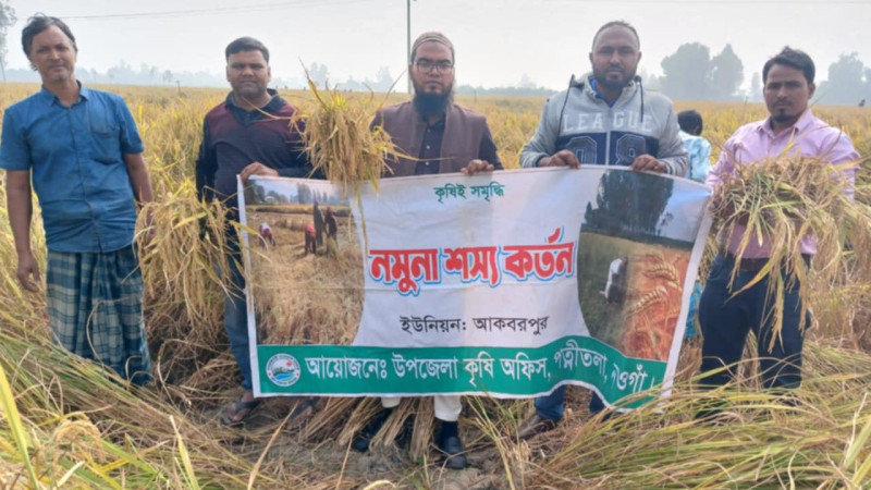 পত্নীতলায় আমন ধানের নমুনা শস্য কর্তন
