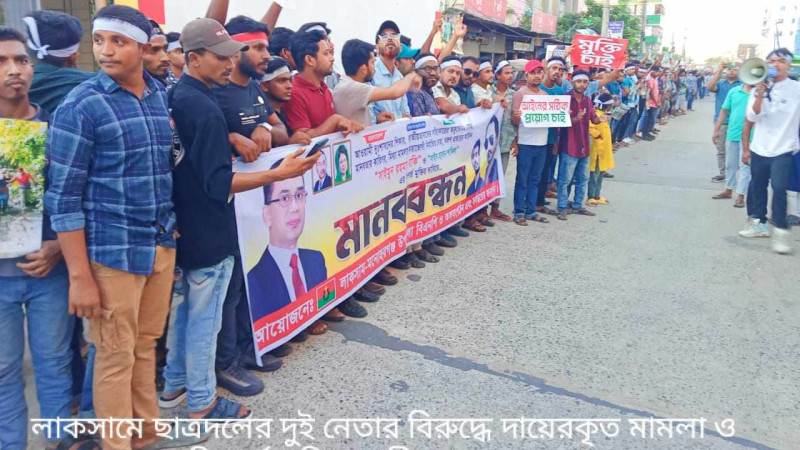লাকসামে ছাত্রদল নেতার মুক্তির দাবীতে মানববন্ধন