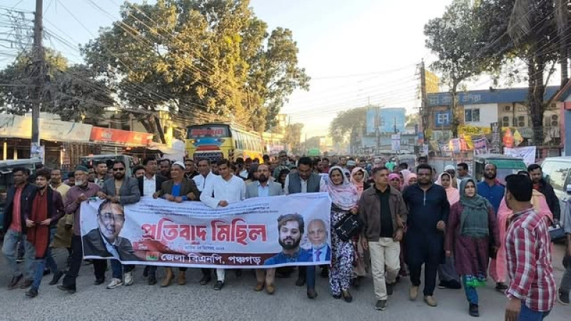 ওসমান হাদির ওপর গুলির প্রতিবাদে পঞ্চগড়ে বিএনপির বিক্ষোভ মিছিল