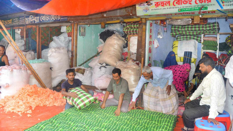 বগুড়ায় লেপ-তোষক তৈরি কাজে ব্যস্ত কারিগররা