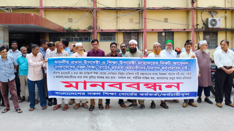 রাজশাহী শিক্ষা বোর্ডে নিরাপদ কর্মপরিবেশের দাবিতে মানববন্ধন ও স্মারকলিপি