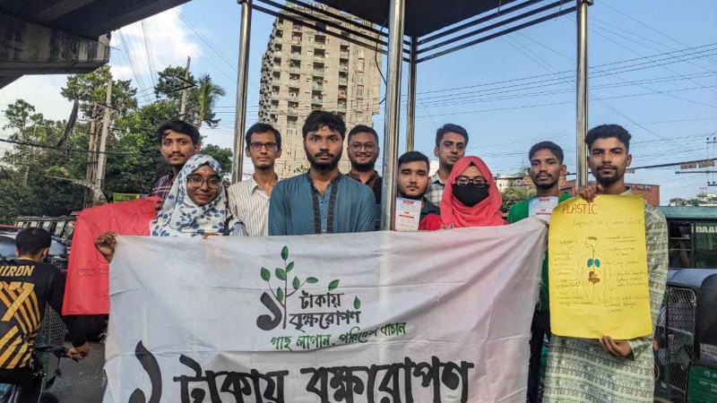পলিব্যাগ নিষিদ্ধের দাবিতে মানববন্ধন করেছে ১ টাকায় বৃক্ষরোপণ সংগঠন