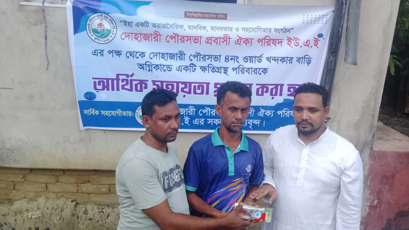দোহাজারী পৌরসভা প্রবাসী ঐক্য পরিষদ পক্ষ থেকে অগ্নিকাণ্ডে ক্ষতিগ্রস্ত পরিবারকে নগদ আর্থিক সহযোগিতা প্রদান