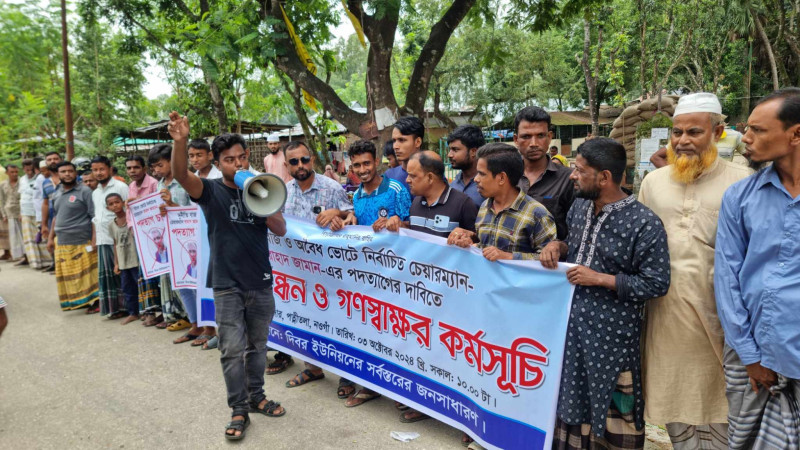 পত্নীতলায় দিবর ইউপি চেয়ারম্যান রাহাদের পদত্যাগের দাবীতে মানববন্ধন