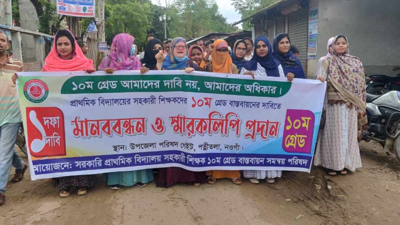 পত্নীতলায় ১০ম গ্রেডের দাবীতে শিক্ষকদের মানববন্ধন ও স্মারকলিপি প্রদান
