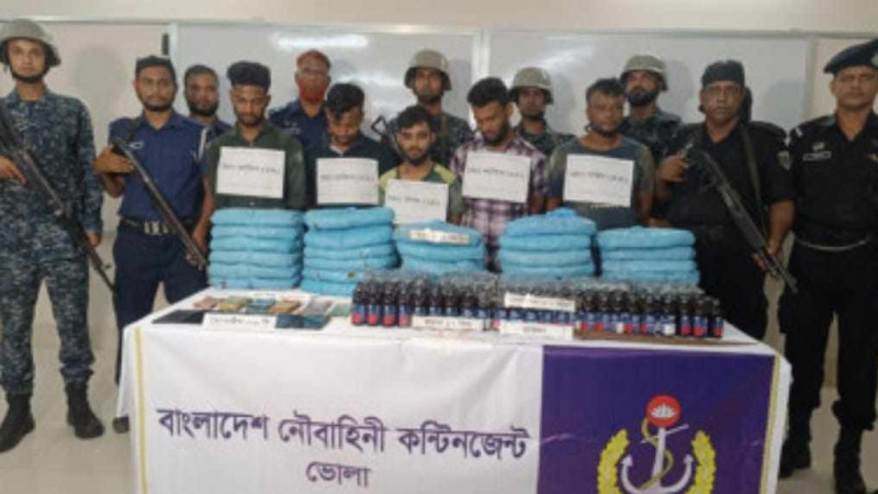 ভোলায় বিপুলপরিমাণ ফেনসিডিল ও গাঁজাসহ আটক ৫