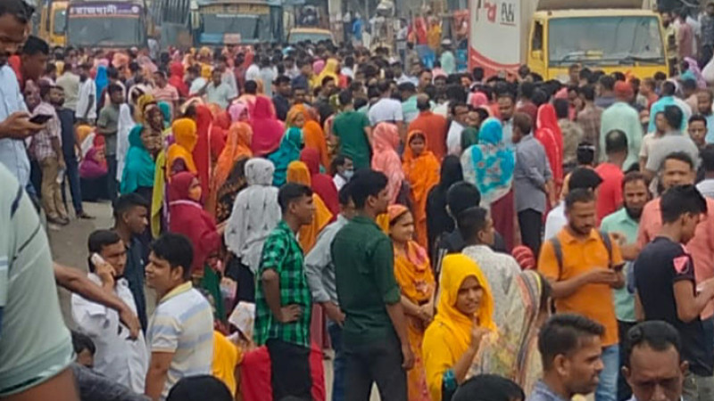 আশুলিয়ায় মহাসড়ক অবরোধ করে দুই কারখানার শ্রমিকদের বিক্ষোভ