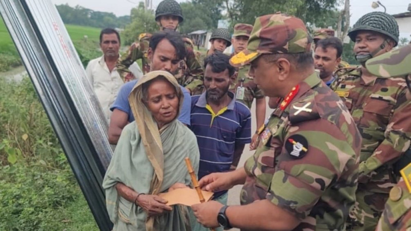 আখাউড়ায় বন্যায় ক্ষতিগ্রস্তদের পুনর্বাসনে ঢেউটিন ও নগদ অর্থ বিতরণ করলেন সেনাবাহিনী