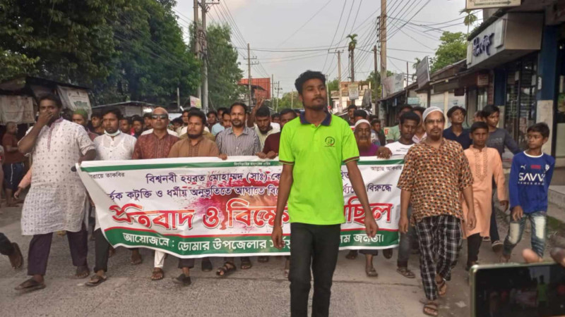ভারতে নবীজিকে কটুক্তির প্রতিবাদে ডোমারে প্রতিবাদ ও বিক্ষোভ মিছিল