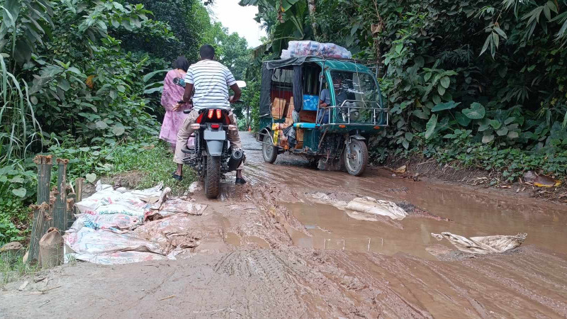 রাস্তা ভেঙ্গে গর্তের সৃষ্টি,চলাচলে চরম ভোগান্তি