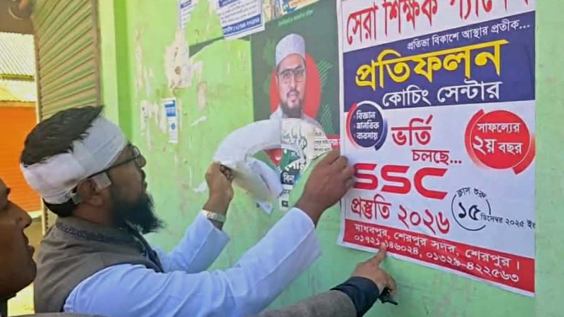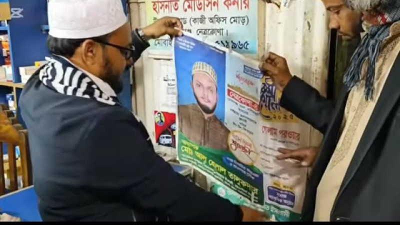 শেরপুরে নিজ নির্বাচনী পোস্টার বিলবোর্ড অপসারণ জামায়াতে নেতা হাফেজ রাশেদুল