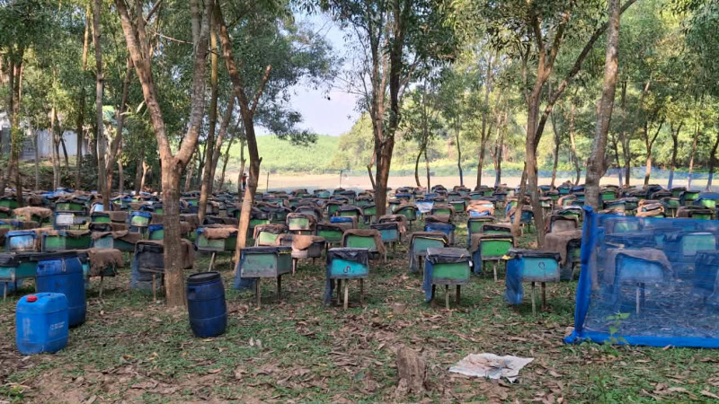 গারো পাহাড়ের টিলায় মধু চাষে ব্যস্ত সময় পার করছেন মৌয়ালেরা