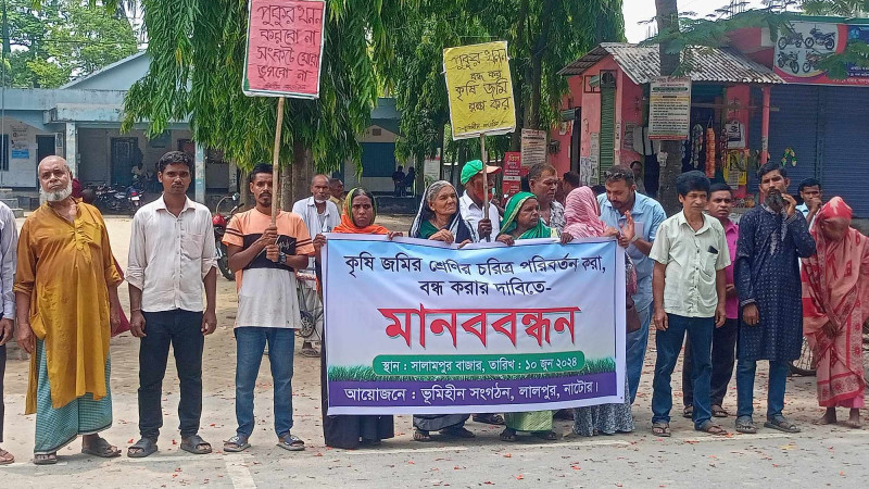 লালপুরে পুকুর খনন বন্ধের দাবিতে মানববন্ধন ও বিক্ষোভ