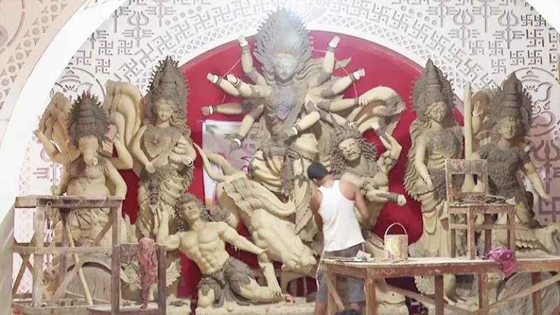 শেষ মুহূর্তে প্রতিমা তৈরিতে ব্যস্ত কারিগররা