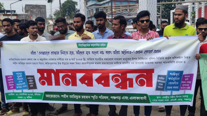 পঞ্চগড়ে আরিফুর হত্যার বিচারের দাবিতে মানববন্ধন