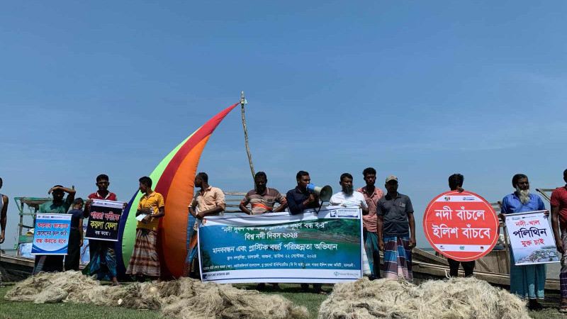 তালতলীতে শিল্প ও প্লাস্টিক দূষণ বন্ধ করে পায়রা নদী রক্ষার দাবিতে মানববন্ধন