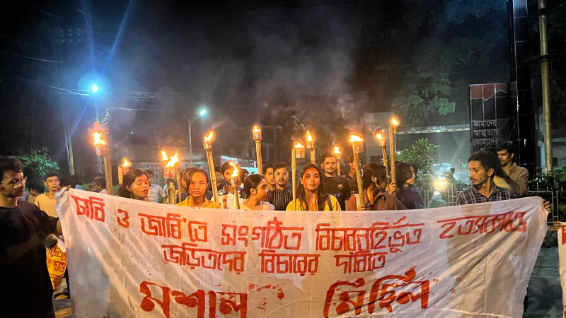 চলমান মব ভায়োলেন্স ও বিচারবহির্ভূত হত্যাকাণ্ডের প্রতিবাদে চবিতে মশাল মিছিল