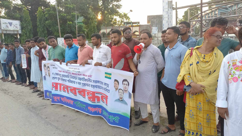 পঞ্চগড়ে ৭ দফা দাবিতে যুব অধিকার পরিষদের মানববন্ধন অনুষ্ঠিত