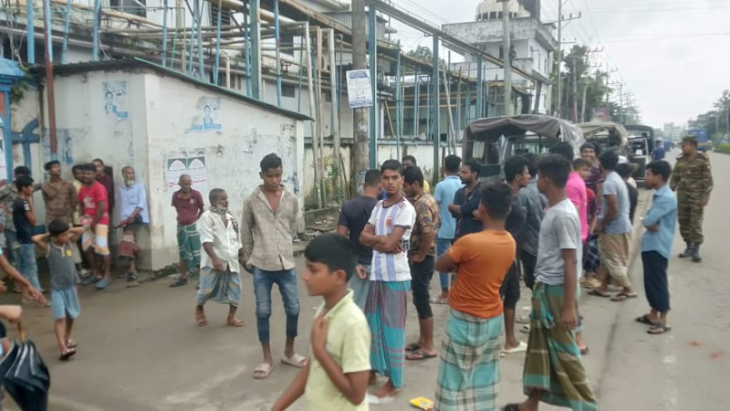 বকেয়া বেতন আদায়ের দাবিতে সাবেক এমপি কিরনের কারখানার শ্রমিকদের মানববন্ধন