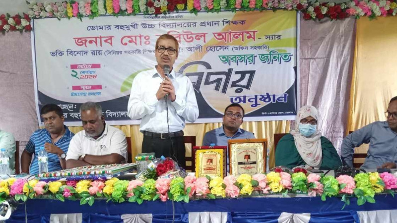 ডোমার বহুমুখী উচ্চ বিদ্যালয়ের প্রধান শিক্ষকের বিদায় সংবর্ধনা অনুষ্ঠিত