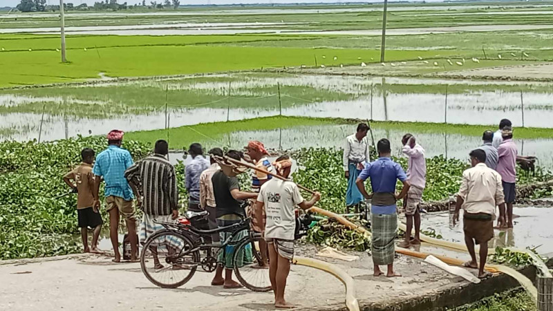 আজমিরীগঞ্জে পানি সেচ দিয়ে বীজতলা বাঁচাতে চেষ্টায় ক্ষতিগ্রস্থ কৃষকেরা