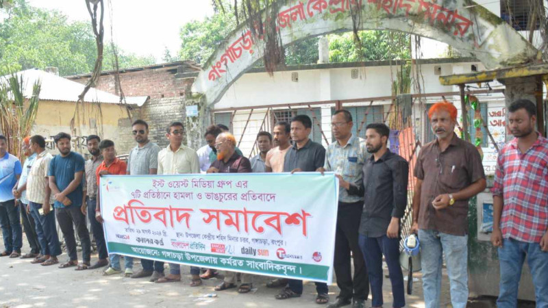 ইস্ট-ওয়েস্ট মিডিয়া গ্রুপে হামলার প্রতিবাদে গঙ্গাচড়ায় প্রতিবাদ সমাবেশ