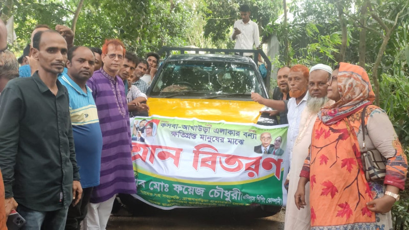 আখাউড়ায় বন্যা আক্রান্ত এলাকায় খাবার বিতরণ করলেন সাবেক ছাত্র নেতা মোঃ ফয়েজ চৌধুরী
