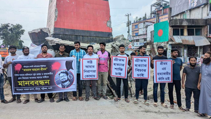 পত্নীতলায় প্রীতম হত্যার বিচারের দাবীতে মানববন্ধন