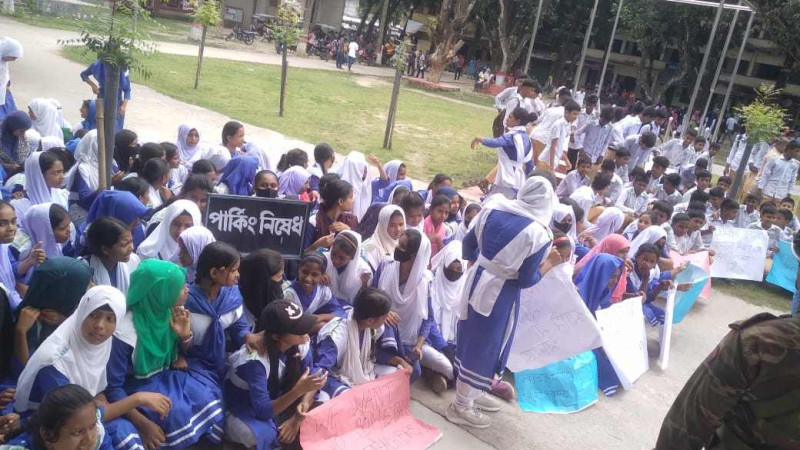 বিরলে শিক্ষক-কর্মচারীদের যোগদানের পক্ষে বিদ্যালয়ের শিক্ষার্থীদের আন্দোলন