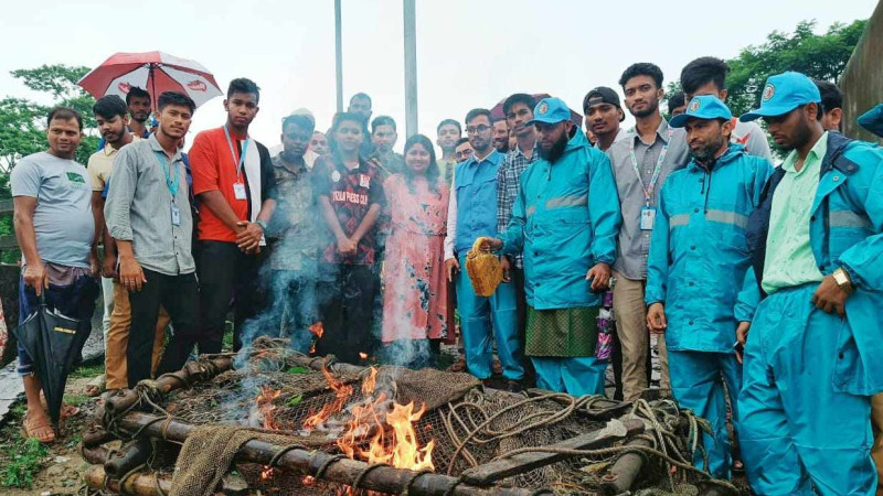 তালতলীতে পুড়িয়ে ফেলা হয়েছে সুইস গেট বন্ধ করে পাতা অবৈধ জাল