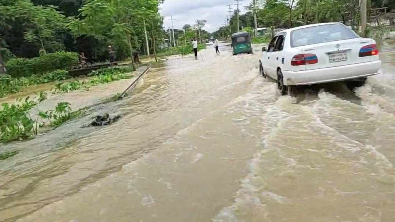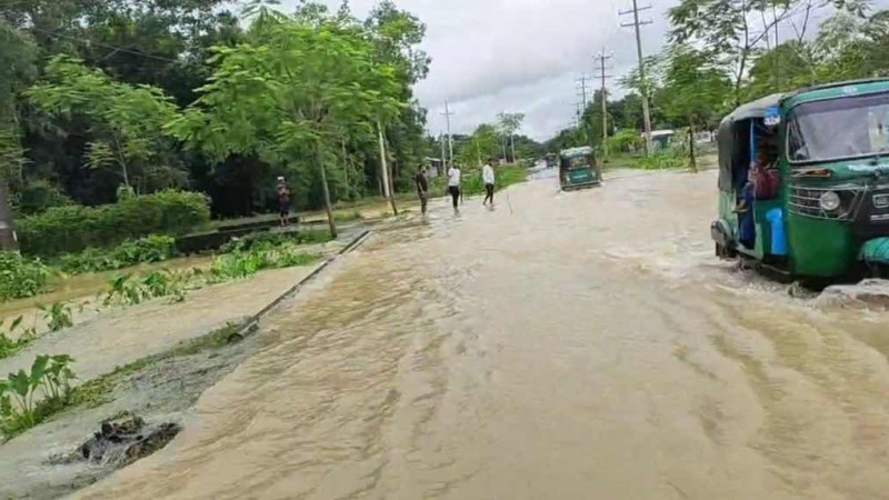 বড়লেখায় ভারি বর্ষণে আঞ্চলিক মহাসড়কে পানি,যান চলাচল ব্যাহত