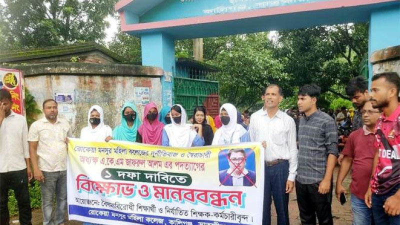 কালিগঞ্জের রোকেয়া মনসুর মহিলা কলেজের অধ্যক্ষের পদত্যাগের দাবিতে সড়ক অবরোধ
