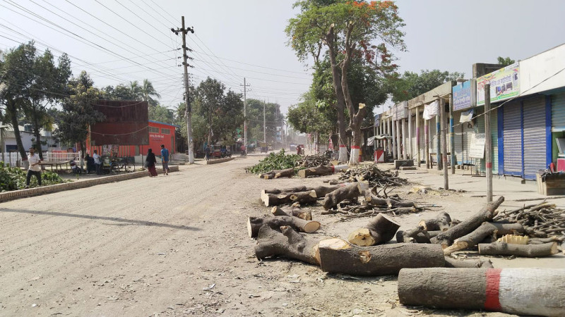 দিনাজপুরে সড়ক প্রশস্তকরণের বলি হচ্ছে শত শত গাছ
