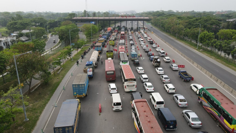 পদ্মা সেতুর টোল প্লাজায় যানবাহনের দীর্ঘ সারি