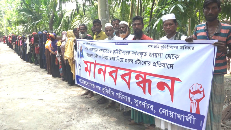 ভূমিহীনদের জায়গা দখল চেষ্টার প্রতিবাদে মানববন্ধন