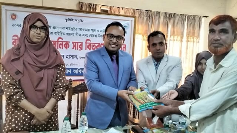 উলিপুরে ক্ষুদ্র ও প্রান্তিক কৃষকদের মাঝে বিনামূল্যে বীজ ও সার বিতরণ
