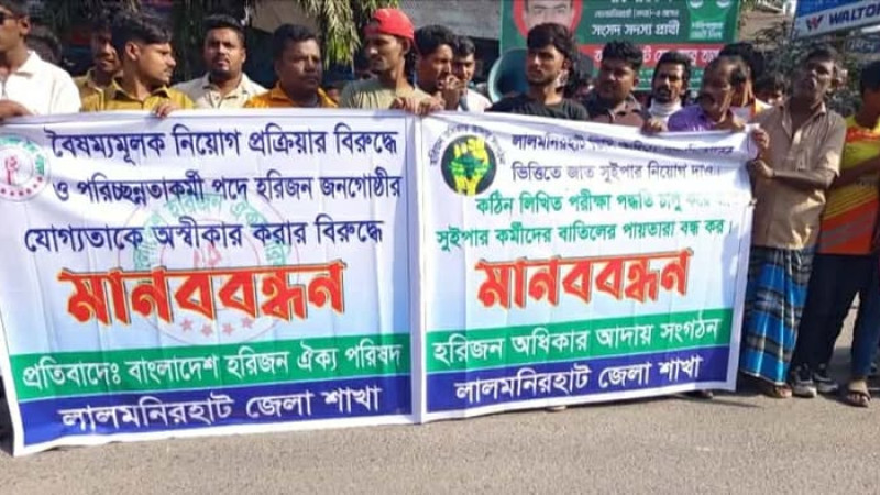 লালমনিরহাটে দ্বিতীয় দফায় হরিজনদের মানববন্ধন