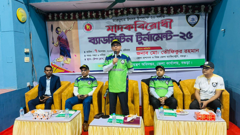 বগুড়ায় ২০ দলীয় মাদকবিরোধী ব্যাডমিন্টন টুর্নামেন্টের উদ্বোধন