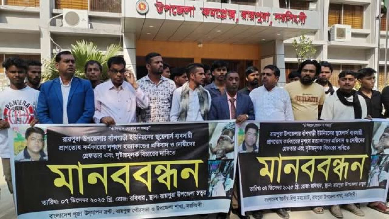 স্বর্ণ ব্যবসায়ীকে গুলি করে হত্যা: বিচারের দাবিতে মানববন্ধন
