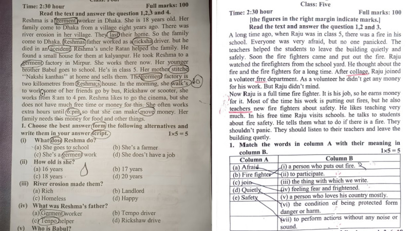 লালমোহনে প্রাথমিক বিদ্যালয়ের প্রশ্নপত্রে অসংখ্য ভুল শিক্ষক ও অভিভাবকদের ক্ষোভ