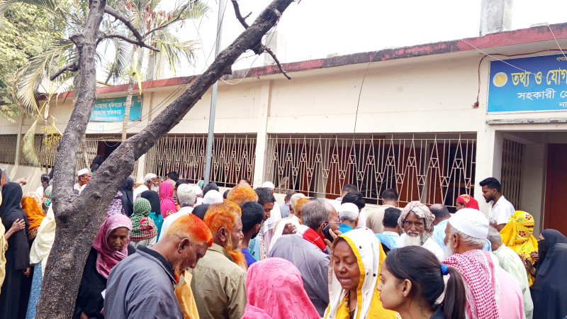 নারায়ণগঞ্জ সদর সমাজসেবা কার্যালয়ে ভেরিফিকেশন নিতে ভাতাভোগীদের ভিড়