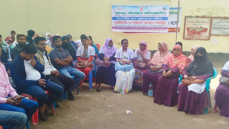 চন্দনাইশে পরিবার পরিকল্পনা অধিদপ্তরাধীন নিয়োগবিধি দ্রুত বাস্তবায়নের দাবিতে কর্মবিরতি ও অবস্থান কর্মসূচি পালন