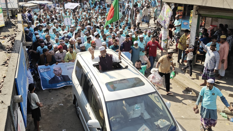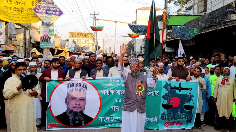 হবিগঞ্জ-২ আসনে জামায়াতে ইসলামী মনোনীত প্রার্থী জিল্লুর রহমানের নেতৃত্বে দাঁড়িপাল্লার গণমিছিল